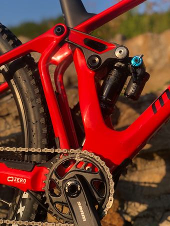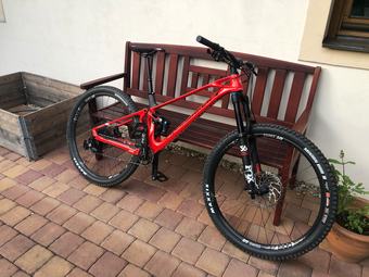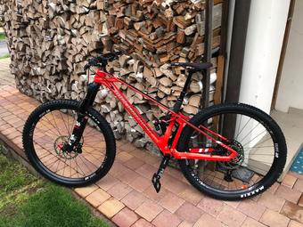 Rychlá enduro raketa s forward geometrií na 29" kolách. Má nízko položené težiště a ZERO suspension – tzn. tlumič je stlačován z obou stran – málo houpe při slapání a krásně hladí nerovnosti. Díky krátké zadní stavbě a kraťoučkému představci kolo rychle reaguje na změny směru, v kombinaci s reachem 470mm to je radost! :-) Díky tomu taky dobře stoupá do kopců. Má zvláštní tenkou, ale širokou horní rámovou trubku. Lak je v červené metalíze, polepeno enduro fólií.