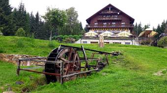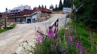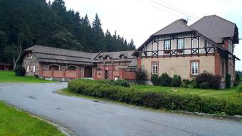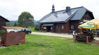 Hotel a hospoda na Bučině. Bučina je nejvýše položená osada v ČR, tvrdila cedule. Věřím jí, kopec to byl ukrutnej :-)