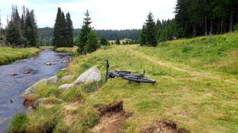 Ve 45 letech klobou dolů za ty kilometry. Já takhle řádil po Šumavě v mládí. Dnes už jezdím s partnerkou jen na pohodu, takže tak do stovky km za den. Kdysi nebylo na Šumavě ani v Bavorském lese tolik lidí ani zákazů. Takže jsem si z Prášil vyjel na Bučinu a přes Finsterau a Waldhauser až nahoru na Luzný (to tam ještě nebyla šotolina, ale pořádně těžký kamenitý trail), pak k Modrému sloupu a Luzenským údolím na Březník a přes Cikánskou slať do Modravy. Dnes už jsou tam všude nekompromisní zákazy…