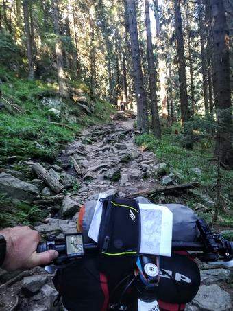 mum-on-bike : Zabalil sem se dost amatérsky. Na řídítkach sem měl spacák a nafukovací karimatku od pinguina privazanou horolezeckou smyčkou. A na zádech camelbak s narardim, svačinou a mikinou kdyby byla večer zima. :)