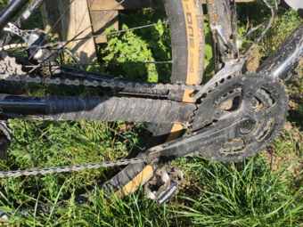 Odřená tiagra po držkopádu, levá vypadá dost podobně :-)) Chytil jsem koleje, když jsem kolo vlastnil asi 4. den.