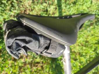 Sedlo a nová posledlová brašna, která zatím drží nad očekávání.