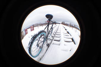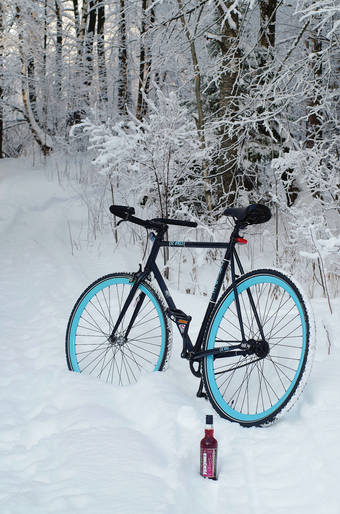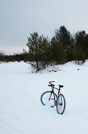 Na začátku byl planetární rozbočovač Shimano Nexus 3, nyní převedený na Fixed Gear. Na třech fotografiích je okolní teplota nižší než –20 stupňů Celsia.