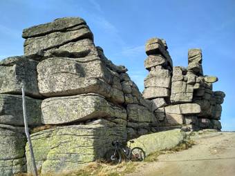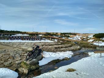 Hubert – k prameni jsem jel jako na koloběžce. Když jsem přijížděl k prameni , tak odjížděl k polské hranici cyklista , takže rychle foto a rychle s odstupem za ním abych viděl případnou kontrolu. Jel na Sněžné jámy. Je na Srenicu , takže zase koloběžka střídavě s chůzí . do sedla. Když jsem začal stoupat ke Svinským kamenům tak už jsem jenom tlačil. Myslím, že kolo nosit nemusíš. Když kolo tlačíš , tak jsi pěšák . Mockrát jsem potkal strážce parku , když jsem tlačil kolo a nikdy mě neřekli , že musím kolo nést.