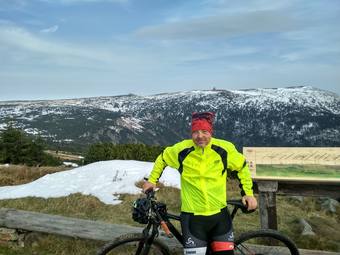 Krkonoše z Vysokého nad Jizerou. Vypadá , že jsem toho ujel hodně , ale krásných sluníčkových 85 km na čerstvém vzduchu.