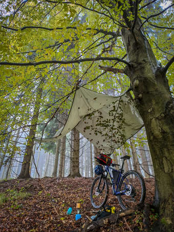 Na řídítkách jen spacák? Nebo jsi vezl i stan nebo celtu?
