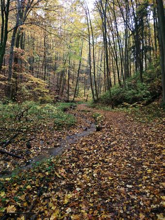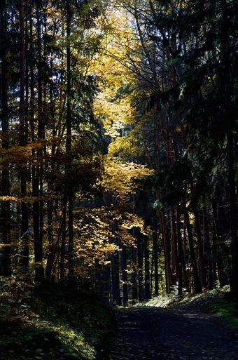 Už to opadává, dnes celý den mrholí, ale potkala jsem venku dvě rozesmáté holky na koních, už se vracely zvenku, ale měly to do Střelic ještě tak hodinku jízdy, tak mě tak naladily, že jsem si to protáhla kousek po asfaltce lesem a zaposlouchala se do šumění deště ve spadaném listí.