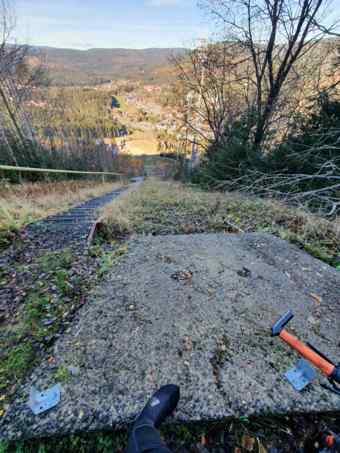 Hawrda – vyjet se to dá , ale většinou dojedu na techniku jízdy. Včera jsem prohrábnul na 3 muldě pod zámkovkou . Po zámkovce a asfaltu ke konci už jen bojuji s předním kolem ve vzduchu.