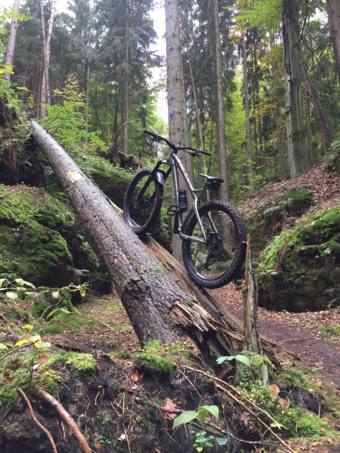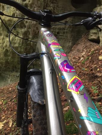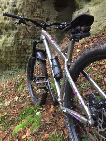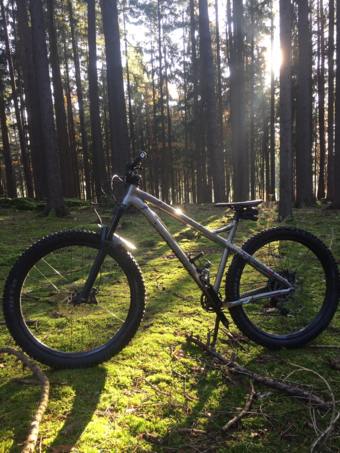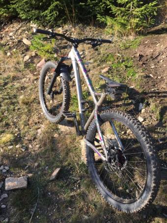 Kupoval jsem jako bazarovku, ale s tím, že bylo skládané prakticky jen z nových dílů, bývalý majitel kupoval zvlášť rám a nechal ho odlakovat kvůli kontrole svarů a poté nalakovat do této stříbrné barvy. Je to na 27,5+ kolech, vidle má možnost 29' kol.