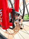 Brzdy jsem sundal (ostatně jako skoro všechno :D) z předchozího rámu. Jsou to zajímavý brzdy, na první dobrou má člověk pocit, že moc nebrzděj, ale to je dáno tím, že jsou prostě hodně „mechanický“ a od tý doby, co je jezdím, už se mi málokdy stane, že bych něco přebrzdil, ustřelil mi předek při brždění, atd…když člověk potřebuje, prostě to chce stisk :) Ale pořád jeden prst, samozřejmě. Hledal jsem něco funkčního, hezkýho, ne tak drahýho jako Hope. Ale dneska bych šel právě do Hope, protože mi chybí štelování vzdálenosti destičky od kotouče.