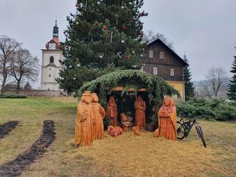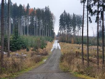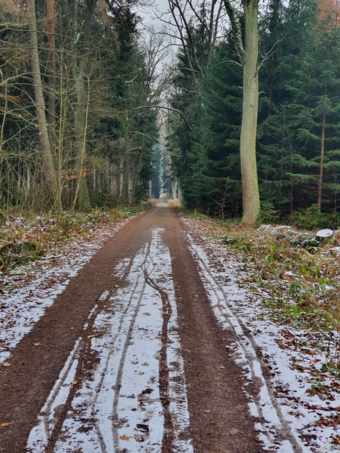 Ty sochy jsou pěkné. Cesta zpátky lesem má dobrou atmosféru. Tady bylo v Údolí pod nulou, ale silnice vypadala suchá, tak jsem s Růženkou jela aspoň na hodinu.