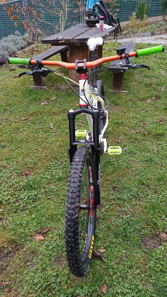 Bělouš opět dostal menší upgrade, vyjma drobných kosmetických záležitostí – kotouče převodních napínak apod. dostal i novou vidlici – nějak na mě na netu vyskočil SR Suntour Rux S 150mm v netknutém stavu, jelikož původní Epicon pomalu začínal ztrácel barvu na nohách (což mě fakt sralo) jsem udělal výměnu a ve výsledku to vyšlo opravdu na pár kaček.