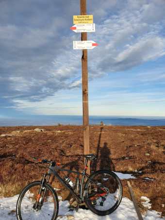 Sněžka to není, ale 1489 mnm to dalo. Dnes jsme zase vyrazil za sluníčkem. A tady pár čísel: asi 35 pěšáků, 2 e-bikeři , 2 pády , 65 km, 1400 nastoupáno , max teplota 12,8. A NA ZÁVĚR , KDE SE NESMÍ NA KOLE JSEM TLAČIL.