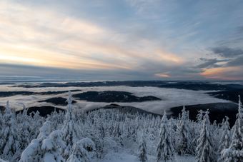 brtníček: na lysý jsem byl letos poprvé na východ slunce, při inverzi. mlha/mraky olizovala všechny nejvyšší vrcholy včetně samotné lysé, kdy se jen chvílemi udělalo v mlze okno a bylo něco vidět. v takovýchto podmínkách si neumím představit kam jinam v okolí jít, aby se mohl člověk pokochat tou krásou. ale budu velice rád, když mi nahodíš nějaké tipy, odkud by byl tak pěkný výhled na východ při inverzi a v případě nutnosti by se tam vešlo komfortně dost lidí