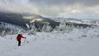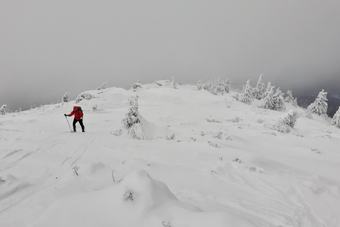 Úplný vrchol Červené hory bývá dostupný běžnému smrtelníkovi jen v zimě. Jindy ho chrání před zvídavci hustá kosodřevina.