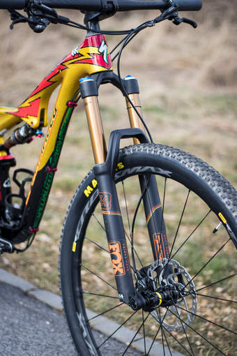 Vypadá to zvláštně, původně to kolo mělo 130mm vidlici, od roku 2014 i teleskop, evo verze 140mm revelation . Barva je fajn.