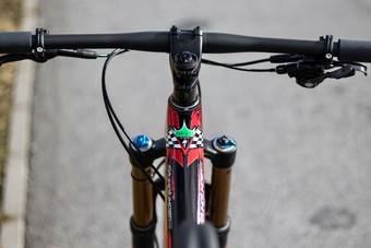 Jako první bych chtěl odůvodnit kombinaci malý rám – komín pod představcem a vysunutou sedlovku – jelikož mám po předchozích pádech zdravotní komplikace, tak potřebuju kratší vzdálenost mezi sedlem a řidítky a tudíž i napřímenější posed. Na řidítka jsem záměrně nechal prostor aby se s nimi dalo do budoucna hýbat směrem dolů, pokud to zdraví dovolí.