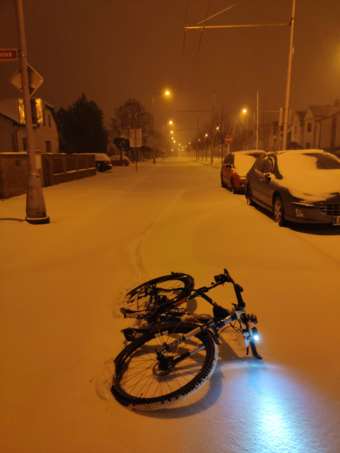 Dnes Praha v 6:00 vypluhované jen hlavní tahy. Jezdím z Kyjí na Zličín, tlačil jsem pouze kopec od Rokytky do Višňovky, jinak podél Rokytky nebo Krejcárku to jelo moc hezky. Všechny vedlejší silnice zasypané, také jsem projížděl stopu. 22 km za 90 minut.