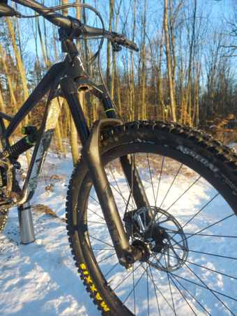 Asi nejžehlivější vidlice kterou jsem kdy jel v zimě. Podporou uprostřed zdvihu strčí do kapsy snad vše