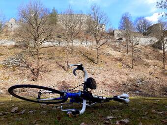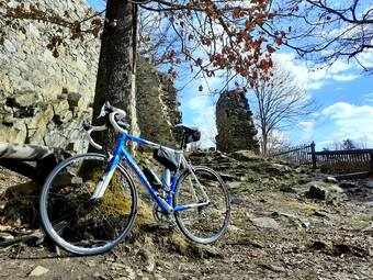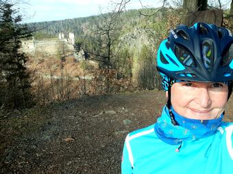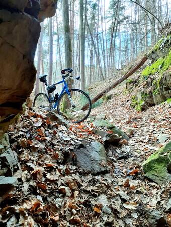 Lézt v tretrách na skálu není nic moc. Naštěstí mám aspoň bajkový...