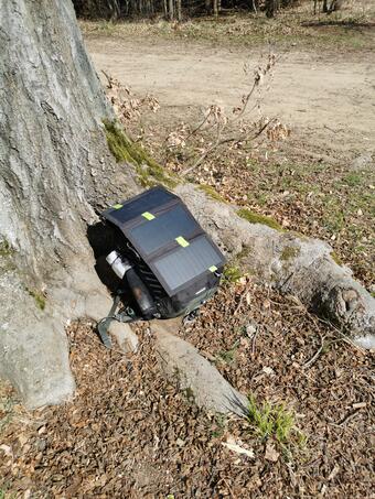 Powerbanka byla nabitá z domu večer jsem z ní nabil telefon. A druhý den dobil ze sluníčka zase zpátky. Chtěl jsem to vyzkoušet jesli je to použitelné v praxi na více dní.