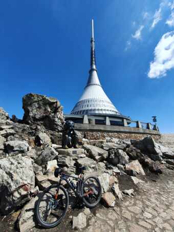 Aduldinho – mám tam zatím hladké pláště , takže to po asfaltě jede slušně . Ale brzo přezuji , už tady začíná mizet sníh z lesních cest. Včera to ale z Ještědu po hřebenu ještě nešlo . Zato z Koberov na Kozákov po červené tur. značce to bylo super.