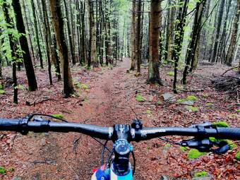 Pláště Continental Cross King 2,2" byly dnes tedy otestovány důkladně, ve výjezdech i sjezdech. Navíc bylo všechno podmáčené a klacky a kořeny klouzaly jako ďas. Cestou jsem ubírala tlak v zadním plášti, pak už se nové gumy chovaly skvěle. Největší posun vidím v tom, jak to na nich neskutečně jede. Do kopců řadím o jeden až dva pastorky těžší převody, po rovinách mi převod chybí. Trochu tomu možná pomohlo i to, že jsem dala jen 80ml tmelu (trochu té gramařiny, no ;-)). Zatím to drží, gumy jsem nahodila, nahustila a kromě ubírání tlaku na ně už nesáhla..