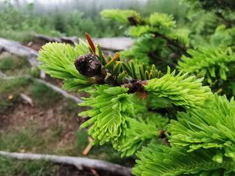 Neděle se tvářila všelijak, rádio a yrno.cz taky šířily paniku ohledně bouřek a krupobití, ale když se do jedenácti žádná apokalypsa nekonala, vzala jsem blizze, do igelitového pytlíku do ledviny mobil, powerbanku a pětistovku, a vydala se živlům, kopcům a šumavskému blátu vstříc. Chtěla jsem hlavně prubnout nové blizzovo obutí a ověřit si, jestli se mi to, že nám to teď nějako podezřele líp odsejpá, jen nezdálo. Měla jsem naplánovaný jen místní okruh, vesměs všechno cesty, které znám a kde můžu jet bez map v mobilu. Celkem pětkrát jsem přitom přejela tisícimetrovou vrstevnici, kromě už profláklého Boubína, Bobíku a Libína ještě Větrný a Basumský hřeben. Ten vlastně byl i hlavním cílem, prošla jsem ho totiž v lednu pěšky a už tehdy jsem si říkala, že se tam musím vrátit na kole. V lednu byl hřeben zasypaný asi půlmetrem sněhu, sněžilo a foukal silný vítr. Včera to bylo o moc lepší, to jen vytrvale celou dobu pršelo :-) Nevede tudy žádná značená trasa a vlastně i s cestami je to tu divoké. Mapy-cz jsou tu k ničemu, ale dobře to tu má zmapované Locus, všechny cesty odpovídají reálu. No, hodně divokému reálu, kolikrát bylo lepší jet přímo lesem, než cestou plnou jam, balvanů a bahna. Naštěstí jsem si před výšlapem na Basum dala v Kubově Huti smažák, hranolky a nealko pivo. Na tuhle jednu nádrž mi motor vydržel jet mimořádně dlouho, poslední mililitr tatarky byl spotřebován až někde u Zbytin, kde převzal štafetu Piknik :-)
