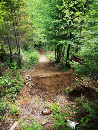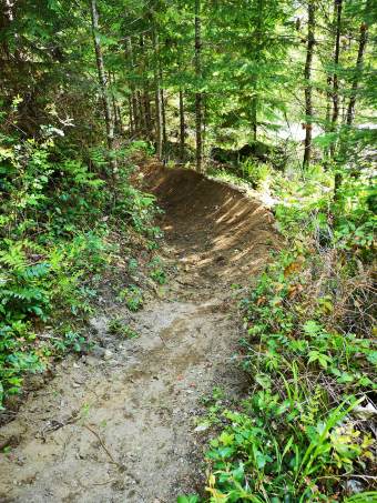 Kamosovi se nelibilo ze posledni skok na jedny zdejsi „pro line“ je moc malej, me zas ze se musi hrozne brzdit do zatacky po nem. Tak sme vzali lopaty, vykopali par velkych balvanu z dopadu a udelali ho mnohem vetsi. Porad je skok moc malej a zatacka utazena ale pohrali sme si s babovkama :) Tak kdo nam to prijde zkritizovat?