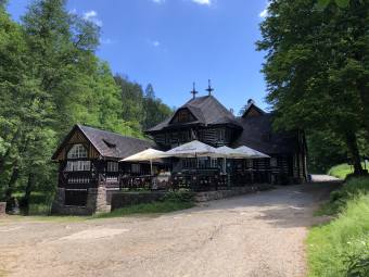 Police nad Metují. Nákup vizitky a obed (borůvkové blbouny)