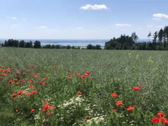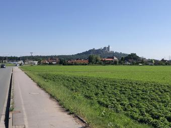 Zpátky to beru z Náchoda přes kopec, s výhledy na Krkonoše .