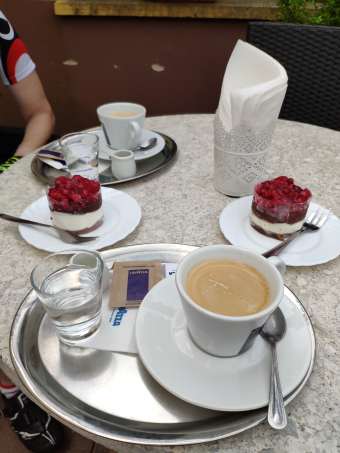 Kávička,dobrůtka,úprk před bouřkou (o hodinu později) a chytla vás průtrž ;-) fajn vyjížďka a dovča,prostě na pohodu :-)