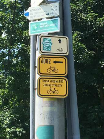 Odbočka ke druhému cíli vyjížďky, k rozhledně Kozubová. Poznámka k trase nezní příliš optimisticky.