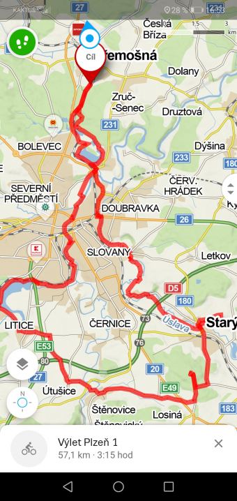 Dovolenou vždy věnuji rodině. Tudíž dnes poslední možnost trhnout se na samovýlet. Ale kam. No co, vyrazím a něco mě napadne. Nabližuju se autem na tradiční start k čepru do Třemošné. Klasická cesta po cyklostezce, Bolevák, Lobzy, Božkov a Koterov. Dneska už bez brodící vložky. Z Koterova krásnou stezkou do Starého Plzence a kam jinam než na rotundu. K rotundě jdu kousek vedle kola, převody, síly ani technika jízdy na tohle nestačí. Ale výhled je za odměnu. Dám si kolečko po naučné stezce a čeká mě vrchařská prémie na hrad Radyně. Lidí jak na Václaváku takže dám jen pivko a jedu dál směr Losiná, Štěnovice, Útušice a Litice tam minu odbočku ke zbytkům hradu, tak snad příště, kolem Borské přehrady, parkem do Doudlevec a kolem řeky zpátky. Povinná zastávka u kluků v Bikeheart a stezkou za stadiony zpět k Boleváku a k autu.