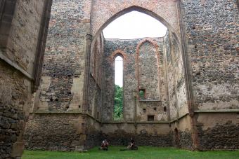 Zarostlej kostel jsou Dolni Kounice – polorozborenej klaster Rosa Coeli.