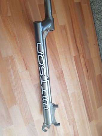 Dlouho jsem přemýšlel, jakou vidlici k titanovému 26" rámu, až jsem vymyslel tohle. Původně jsem měl v plánu jen vyměnit rám u jednoho ze svých kol, nakonec jsem pořídil i vidlici a v konečném důsledku stavím nové kolo. Doma se se mnou (zatím) baví.