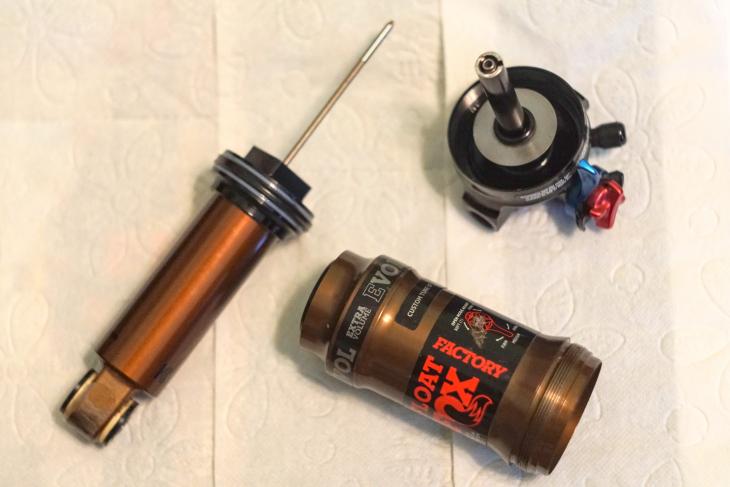 Ta tenká tyčinka je tam volně – slouží ke štělování komprese a jako lockout. Zlomená je pístnice (ta černá tlubička pravo nahoře). Zjevně nejsem první s tímto problémem. Někoho do té pístnice napadlo navrtat díru pro průtok oleje a pak pak to přesně v tom místě praská. Osobně to považuji za špatná design.