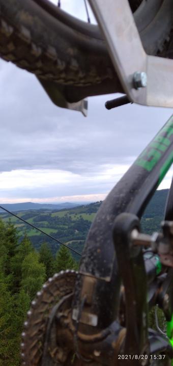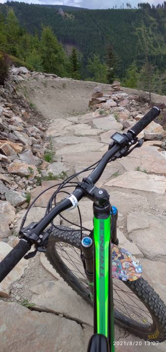 Hezky pěkně! Jsem na to v červenci taky koukal z lanovky a stezky, když jsme tam byli s rodinkou, že tam musím taky někdy vzít kolo… Jinak super vidět, že taky někdo na kole vozí navlíklý protizhmyzí „tričko“, když jej veze na střeše a máš stejnej vkus na parádní blatníčkek ;-)
