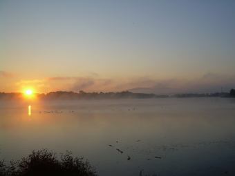 ranní mlha na jezeře