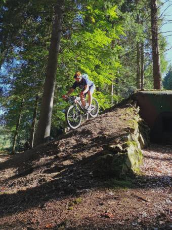 Neděle už byla jen na dojídání nekonečného guláše, balení a krátkou vyjížďku na místní trail objevený kalimerovým psem a následně za ním hned manželkou. Trail byl u Křišťanovického rybníka zbudován v rámci Xterry a postaral se o krátké nedělní intermezzo spočívající v návštěvě prachatické nemocnice.