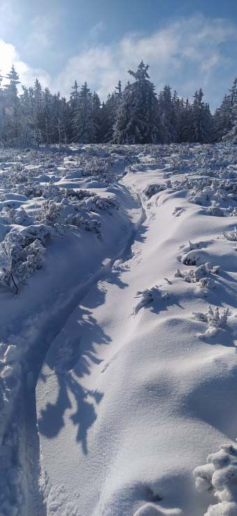 theedge na běžkách klouže kdejakej vúl,na kole jen korunovanej,jinak dneska pěkně přimrzlo,tak to jelo líp.víc ja čtyřicet za tři hoďky na pohodu.Na běžkách nejezdím,bo nám tu blbí cyklisti kurvěj stopy :-)