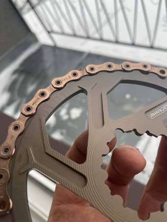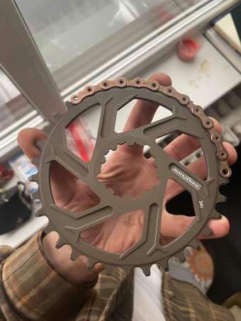 jezdil jsem garbaruk a absoluteblack a u obojího to bylo hlučný a mělo hrubý chod – garbaruk má extrémně vysoký zuby, ab zase celkem nízký, oboje samozřejmě NW pro 12spd. – no a tak jsem došel k závěru, že to je asi fakt tim tvarem zubů – sram je má sešikmený a je to krásně zticha a chodí to hladce i pod záběrem v bordelu.
