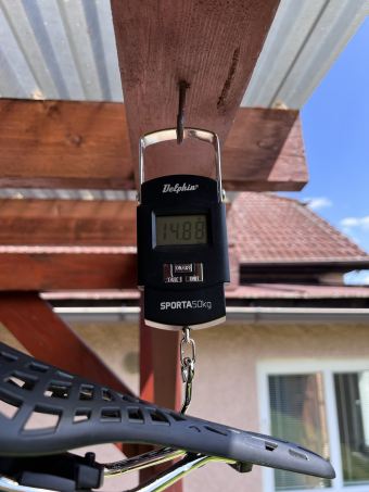 | Hmotnost | 14,9 se vším na fotkách (i teleskopem a pedály) |