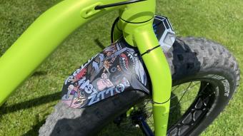 Za barakem staci trochu vyjet vyskovych metru a uz se da a nejaky snizek je. Testovaci jizda super, pri tlaku asi 0,2–0,4 baru kolo krasne tlumi. Jizda fajn, ale tesim se do hor, si budu brat fatbike furt :-). Jinak potesilo, ze pasuje i obyc fender od kupkola, co jsem dostal kdysi gratis. At vam to jezdi a je vic snehu a zimy :-)