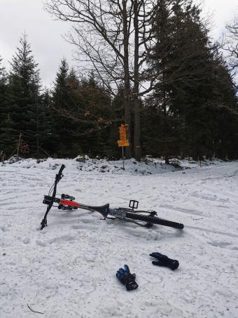 Mamko kde máš fotku fakujícího robota z Bukové? :D Sníh byl včera už měkký a mokrý a jízda na kole nic moc.