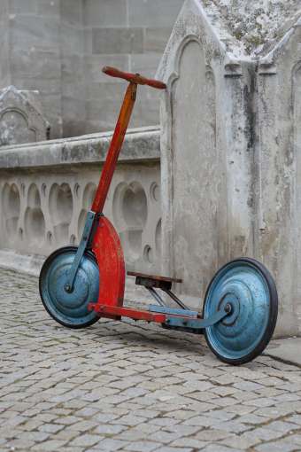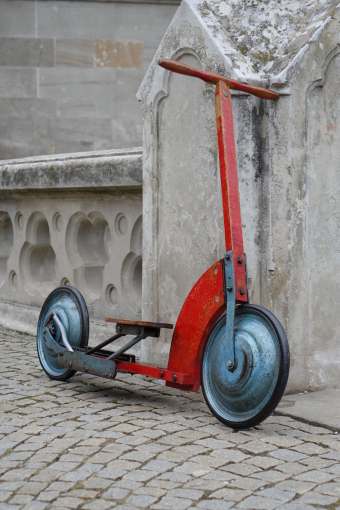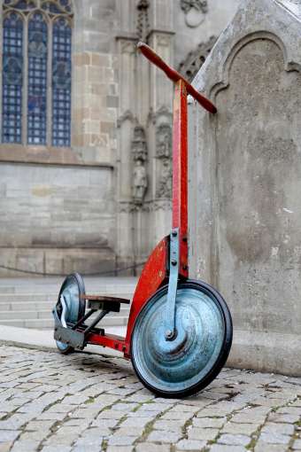 Jako konstrukční řešení je to velmi zajímavé, ale jinak mi to smysl vůbec nedává. Než pohon u tohoto honit přes mechaniku, tak se tou hnátou radši odrazím a mám klid. Tohle navíc bude těžké jak kráva a postrádá to tu jednoduchost kolobrndy. Jinak asi dobré, ale jezdit na hadicích po kostkách fakt nechceš. To musí být zážitek:( V té době byly kostky téměř všude a hladký asfalt byla utopie jak z nějakého sci-fi :)