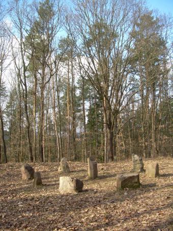 Od rozhledny jsem po neznačených cestách sjela/sešla k Stonehenge, pak se napojila na modrou turistickou značku a po ní pokračovala k Hněvu, šibenici, kapli Smíření, a pak dolů pořád po modré k Lenosti a do Hradčan. Po vrstevnicích se dalo jet, prudká klesání jsem vedla.
