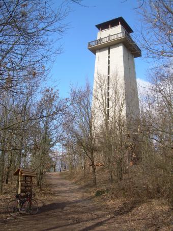Od nemocnice jsem jela vyštěrkovanou pěšinou po vrstevnici podél lesa, u hřbitova jsem se napojila na žlutou turistickou značku a u rozcestníku odbočila po modré k rozhledně. Přestože jsem měla silniční kolo s úzkými plášti bez vzorku, jela jsem tak 70% trasy, na mokrém mi to někde prokluzovalo a strmější místa jsem vytlačila.