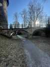 Kožíšku, opřela o šlapátko, tam je ten svah tak strmý, že se to dá opřít. Od zpodzámku jsem vyfotila i most Vysočinu, ale ten už tady loni byl. Ještě je to kolem Oslavy všechno šedivé, musíš to vyfotit, až se to zazelená.