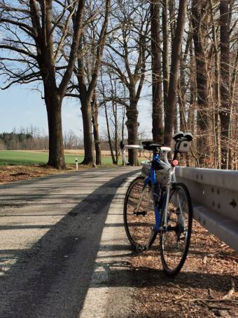 Šíra byl za letošek dnes teprve potřetí venku, tak jsem si nebyla jistá, jestli toho na něj nebude moc, takhle ho přepadnout s nedělním výletem. Starouš se ale rozezpíval všemi svými navoskovanými řetězovými články a smál se celou cestu. I když možná to bylo spíš skřípání.. :-D Počasí jsem si nemohla přát lepší. Bezvětrno, žádné ostré slunce, dokonce ani moje karma „jedu na kolo = záruka deště“ se nevyplnila a navíc, celý den Castelli bunda termoregulovala za mě. Nevím, jak to ti Taliáni dělají, ale zvládla bravurně ranní 4,5 stupně i poledních cca 15, uvezla jsem ji celou cestu. Dalším velkým zdrojem radosti byly nové, (s velkou rezervou) zimní tretry od NorthWave, o dvě čísla větší, takže odzvoněno prstům a kloubům umačkaným v apartní Vittoria botce, která sice udělá z kopyta baletní nožku, ale vydržet se v ní dá bez utrpení tak dvě hodiny max. Abych tedy nekřivdila, mám chodidlo alá Jožin z Bažin :-))